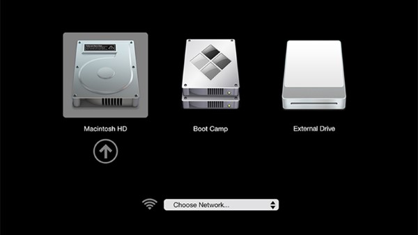 Để thay đổi hệ điều hành, khi khởi động máy, bạn nhấn giữ phím Option cho đến khi màn hình hiển thị hai phân vùng là Macintosh HD và Boot Camp. Chọn phân vùng tương ứng với hệ điều hành bạn muốn sử dụng:
