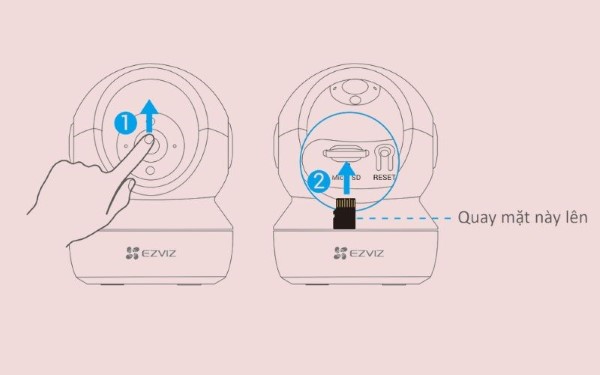 Lưu ý: Sau khi lắp thẻ nhớ, cần phải khởi tạo thẻ trong ứng dụng EZVIZ trước khi sử dụng.