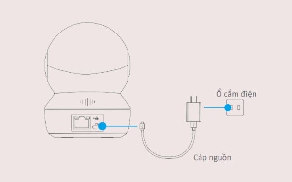 Kết nối cáp nguồn vào camera, rồi gắn đầu sạc vào ổ điện để camera khởi động. Lưu ý, khi đèn LED chuyển sang màu xanh và nháy nhanh, có nghĩa là camera đã sẵn sàng để kết nối với mạng Wi-Fi.