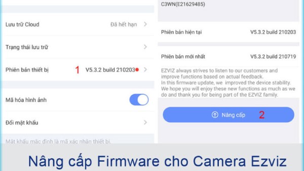 – Cách xử lý: Truy cập ứng dụng Ezviz, kiểm tra mục cập nhật firmware và tải về phiên bản mới nhất.