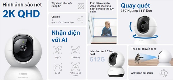 Ngoài ra, thiết bị có khả năng lưu trữ dữ liệu lớn với thẻ nhớ MicroSD đến 512GB, hỗ trợ phát hiện chuyển động nhanh cũng như quản lý thuận tiện thông qua ứng dụng Tapo một cách dễ dàng.