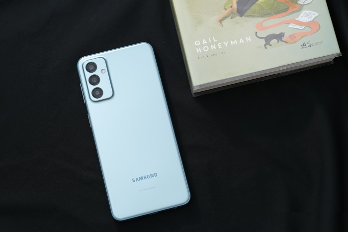M23 5G được thiết kế theo phong cách tối giản nhưng rất tinh tế và sang trọng. Nổi bật trên mặt lưng là module camera hình chữ nhật đồng màu với mặt lưng. Bên trong cụm camera này là 3 ống kính và 1 đèn flash LED. Cụm camera không quá lồi đem đến sự hài hòa cho máy.