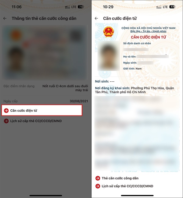 Cuối cùng, bạn hãy bấm chọn vào mục Căn cước điện tử. Lúc này, trên màn hình sẽ hiển thị tất cả thông tin của bạn và thông tin này có giá trị pháp lý tương đương với thẻ căn cước công dân gắn chip vật lý.