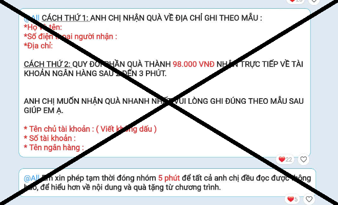 Trên không gian mạng thời gian gần đây xuất hiện nhiều trường hợp khách hàng nhận được tin nhắn qua các nền tảng mạng xã hội, các nhóm thông báo trúng thưởng các phần quà giá trị như điện thoại, tivi, phiếu mua hàng tại hệ thống Viettel Store. Đây là chiêu trò tinh vi của các cá nhân/tổ chức giả dạng có dấu hiệu lừa đảo chiếm đoạt tài sản.