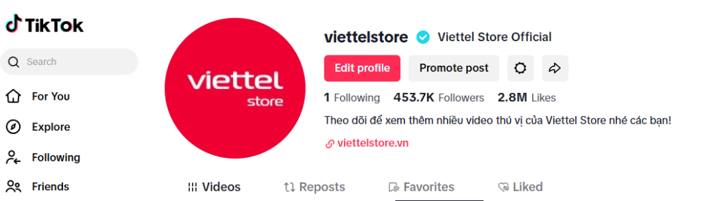 https://www.tiktok.com/@viettelstore (tích xanh)