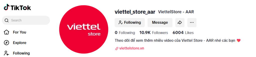 Viettel Store chỉ sử dụng 02 Tài khoản Tiktok chính thức là Viettel Store và Viettel Store AAR tại 2 địa chỉ: