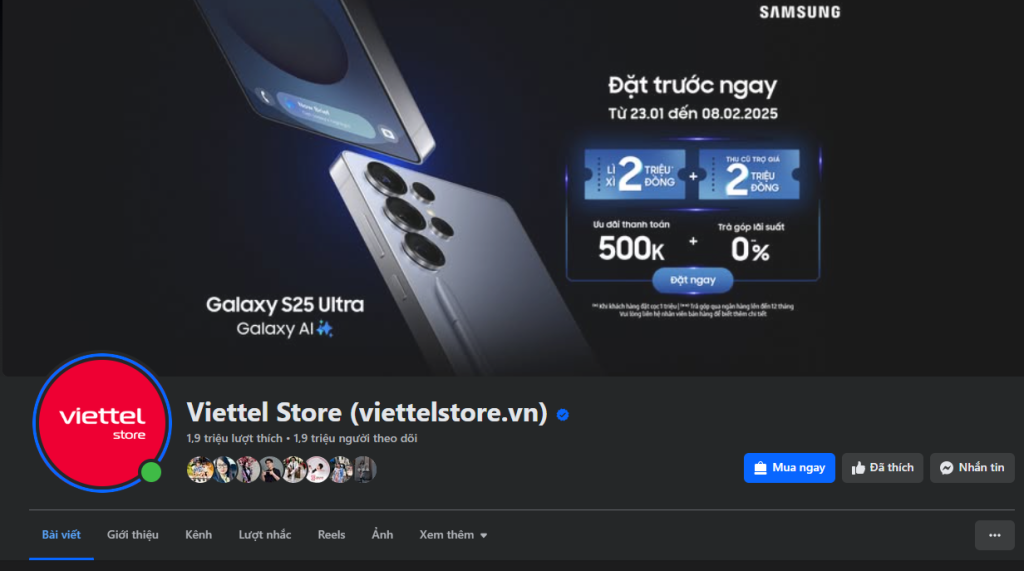 Viettel Store sử dụng duy nhất 1 fanpage Facebook có địa chỉ: https://www.facebook.com/ViettelstoreOnline/