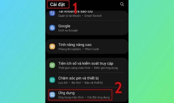 Bước 1: Truy cập vào giao diện Cài đặt > Chọn Ứng dụng.