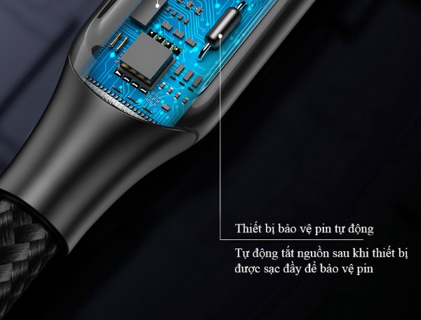 – Tự động ngắt khi đầy pin: Khi thiết bị sạc gần đạt mức pin tối đa, dòng điện giảm dần và vi mạch trong cáp sẽ ra lệnh ngắt kết nối.