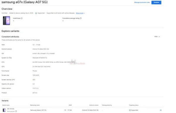 Trong thời gian gần đây, nhiều nguồn tin cho biết Samsung đang chuẩn bị giới thiệu loạt điện thoại Galaxy A thế hệ 2026, và Galaxy A07 5G là một trong những sản phẩm sắp trình làng. Việc thiết bị này được liệt kê trên Google Play Console đã xác nhận sự tồn tại, đồng thời cung cấp cái nhìn sớm về cấu hình và diện mạo của máy.