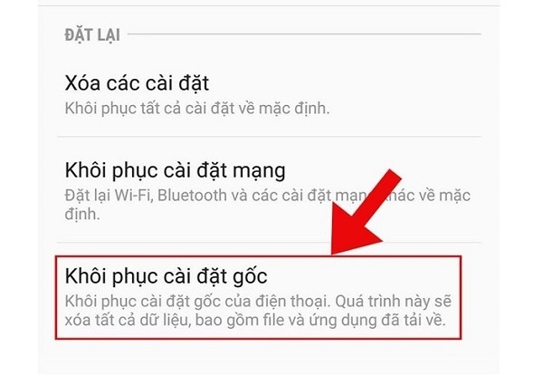 Chọn tiếp Khôi phục cài đặt gốc