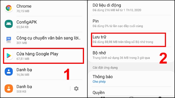 Bước 2: Nhấn chọn vào Cửa hàng Google Play > chọn Lưu trữ.