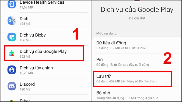 Chọn Dịch vụ của Google Play và chọn mục Lưu trữ
