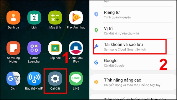 Bước 1: Mở vào Cài đặt > chọn mục Tài khoản và sao lưu.