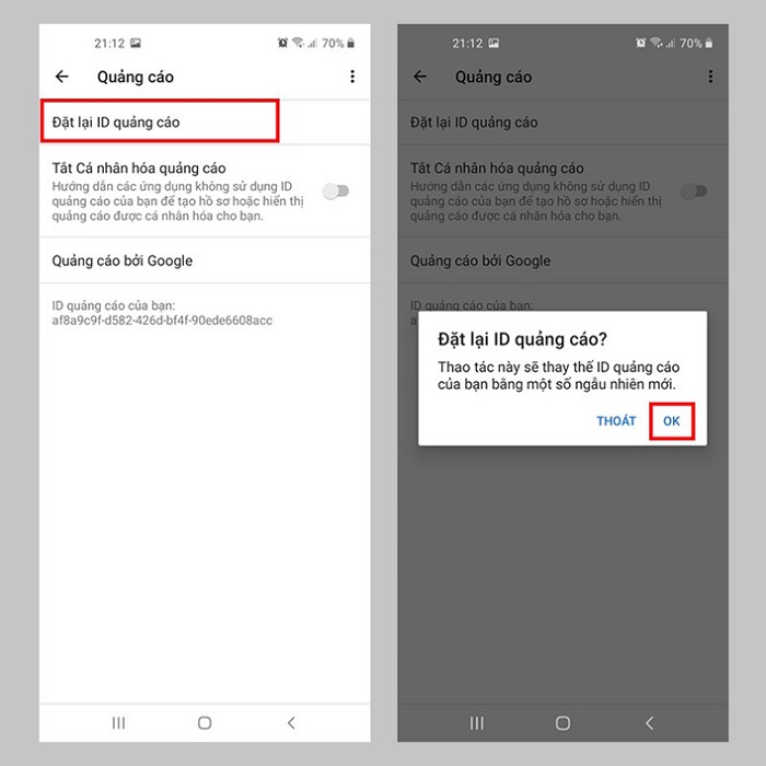 Bước 4: Ở bước này chọn đặt lại ID quảng cáo, rồi click OK