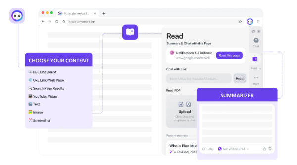 Monica là một tiện ích mở rộng Chrome được cung cấp bởi API ChatGPT, mang đến khả năng hỗ trợ đa dạng thông qua giao diện đàm thoại. Nhờ được đào tạo trên một tập dữ liệu ngôn ngữ khổng lồ, Monica sở hữu khả năng xử lý ngôn ngữ tự nhiên ấn tượng, cho phép tương tác với người dùng một cách hiệu quả.