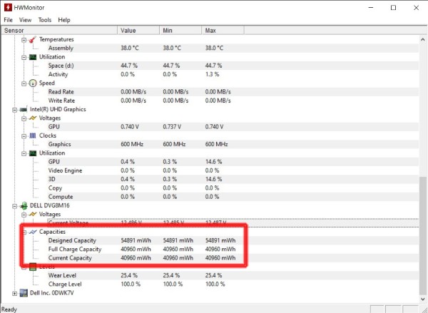 Hướng dẫn cách kiểm tra pin máy tính Dell qua CPUID HWMonitor như sau: