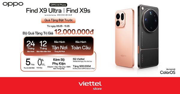 – Từ ngày 28/04 đến hết ngày 04/05/2026, khách hàng tham gia minigame trên landing thông tin sản phẩm OPPO Find X9s và OPPO Find X9 Ultra sẽ được tham gia quay số may mắn cơ hội trúng các quà tặng sau: