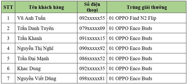 – 06 giải theo ngày: Mỗi giải 01 OPPO Enco Buds.