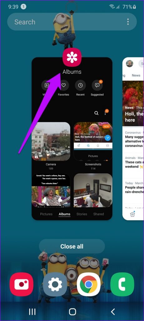 Trước tiên các bạn cần mở lần lượt 2 ứng dụng lên trước. Tiếp theo đó nhấn đè vào nút Recents để mở được menu tổng quan giống như hình dưới đây.
