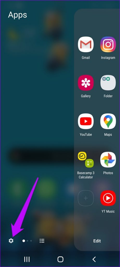 - Bước 1: Vuốt màn hình từ cạnh phải qua để mở khay ứng dụng. Nhấn vào biểu tượng hình bánh răng ở góc dưới cùng bên trái.