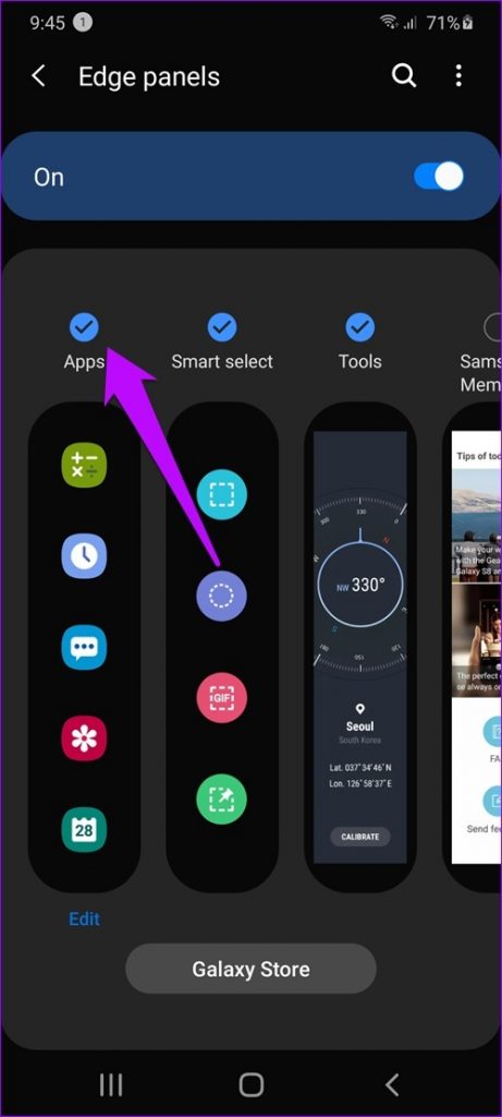 Để thực hiện, bạn hãy bật App module của khay ứng dụng cạnh lên trước.