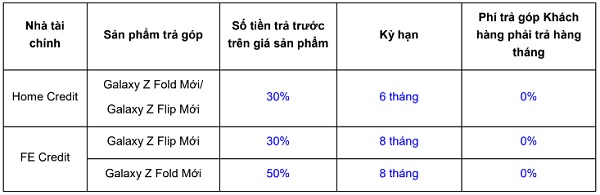 1. Chương trình ưu đãi trả góp 0% (trong 12 và 24 tháng) khi mua Samsung Galaxy Z Flip6 & Galaxy Z Fold6 qua thẻ tín dụng