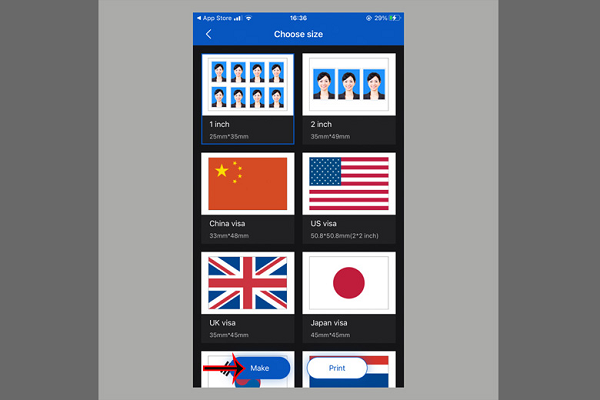 Bước 3: Lựa chọn kích thước ảnh thẻ >> Nhấn vào nút Make.