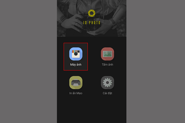 Bước 1: Tải ứng dụng Ảnh ID về điện thoại >> Khởi động >> Nhấn chọn vào phần Máy ảnh