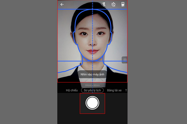 Bước 3: Chỉnh sửa phần mặt và vai sao cho trùng khớp với khung viền >> Nhấn vào nút Chụp là xong.