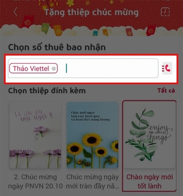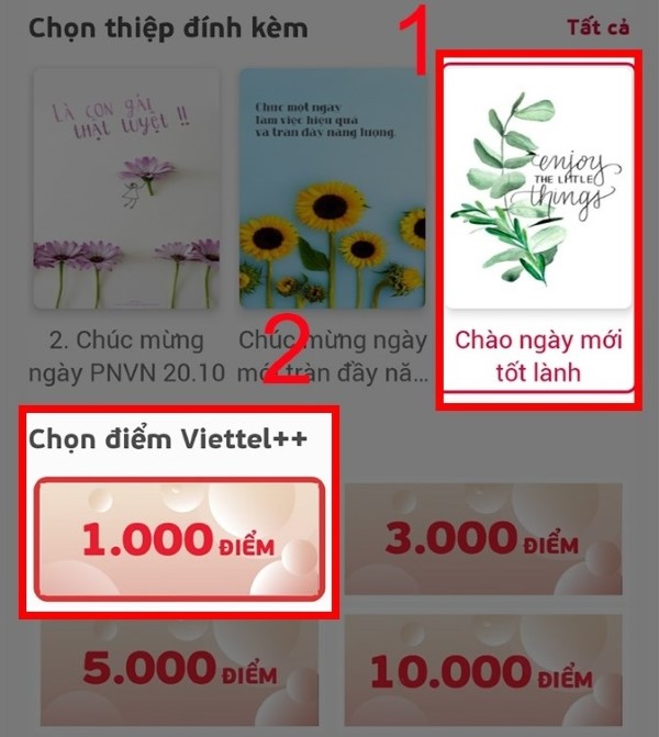 Bước 5: Chọn thiệp và số điểm muốn tặng
