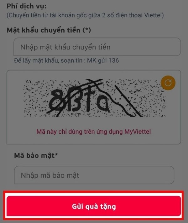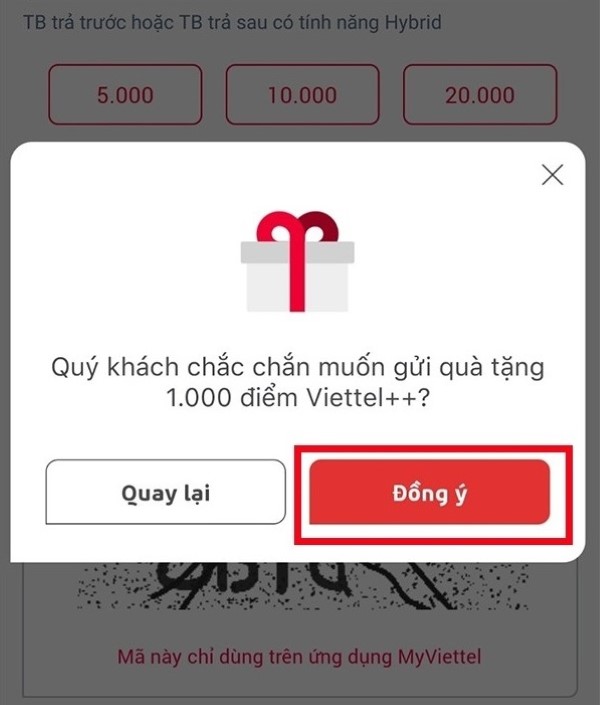 Lưu ý: Chỉ có thể tặng cho thuê bao cùng mạng Viettel và có cài ứng dụng My Viettel.