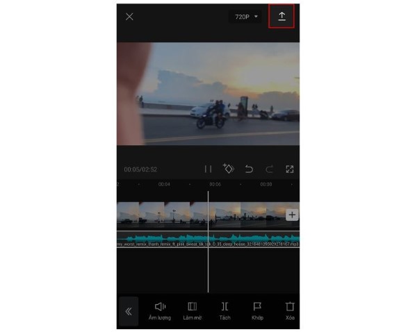 - Sau khi hoàn tất, nhấn biểu tượng mũi tên phía trên để xuất video.
