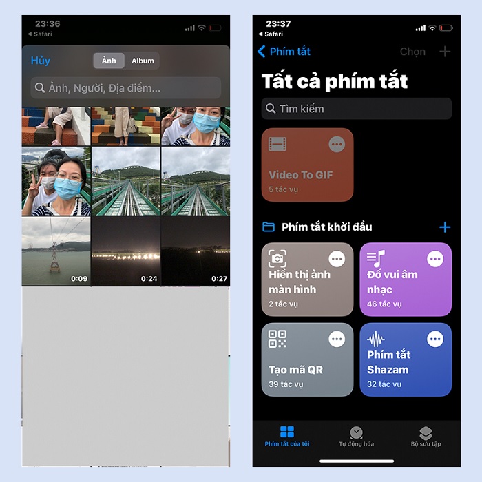 Bước 3: Sau khi phím tắt chạy, màn hình sẽ hiển thị lên ảnh và video trong máy bạn. Lúc này bạn chỉ cần chọn video muốn chuyển sang ảnh GIF là xong. Lưu ý là bạn chỉ nên chọn những video có thời gian là vài giây thì ứng dụng mới xử lý nhanh được.
