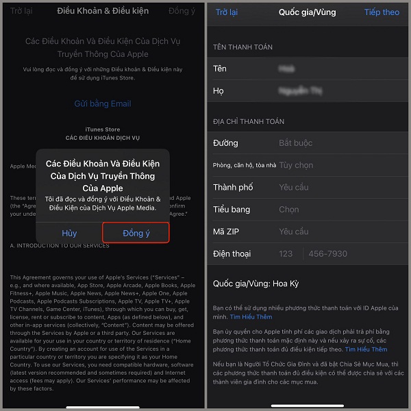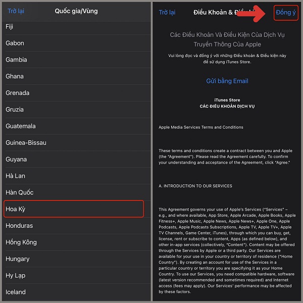 Ở bước này, bạn hãy bấm chọn vào Hoa Kỳ và nhấn nút Đồng ý.