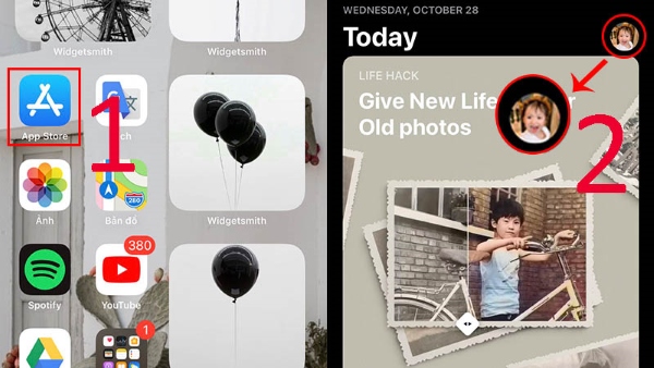 Bước 1: Trước tiên, người dùng mở kho ứng dụng App Store trên iPhone. Sau đó, bạn chọn biểu tượng cá nhân tại góc trên bên phải màn hình (Account).