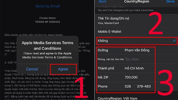 Bước 5: Sau đó bạn chọn quốc gia muốn chuyển là Việt Nam và chọn nút Đồng ý 2 lần rồi nhấn Tắt Cài đặt là đã hoàn thiện cách chuyển vùng App Store trên iPhone về Việt Nam.