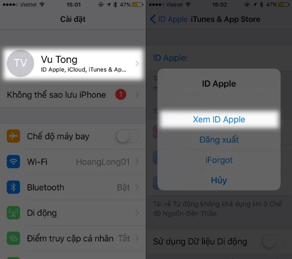 Bước 3: Tiếp theo, người dùng chọn mục ID Apple và chọn Xem ID Apple.