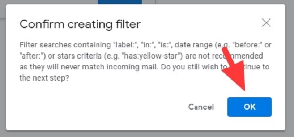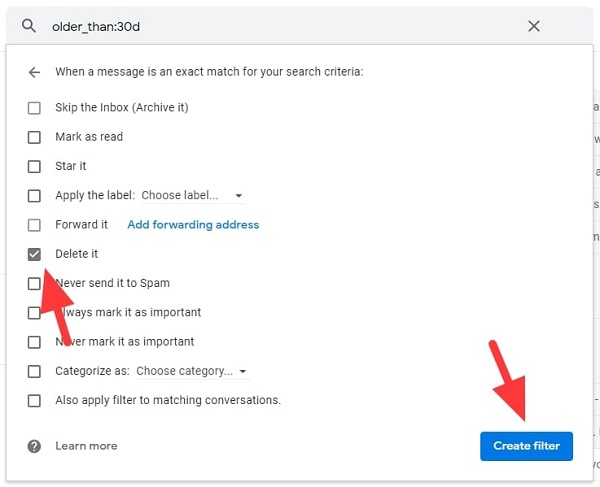 Bước 6: Cuối cùng bạn chọn vào ô Delete it rồi chọn Create filter.