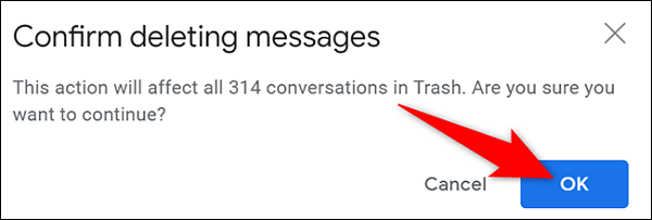 Bạn sẽ nhấp vào “OK” khi xuất hiện thông báo “Confirm Deleting Messages” (Xác nhận xóa tin nhắn) mở ra.