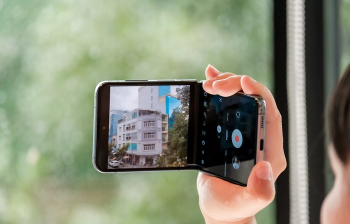 Samsung nghiên cứu và phát triển tính năng Flex Mode cho phép người dùng gập Z Flip4 ở các góc độ khác nhau. 1/2 thân máy trở thành giá đỡ giúp việc makeup, xem phim hay chụp ảnh trở nên dễ dàng hơn. Đặc biệt, nếu bạn nào muốn quay video tiktok không cần thêm sự trợ giúp từ công cụ khác. Ngoài ra, tính năng này cũng rất hiệu quả khi hoạt động đa nhiệm.
