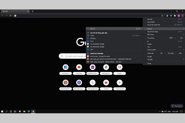 Bước 1: Mở trình duyệt web Chrome >> Bấm tổ hợp phím “Ctrl + H” hoặc nhấn vào nút có dấu 3 chấm dọc nằm phía trên bên phải màn hình >> Nhấn vào “Lịch sử” >> Bấm nút “Lịch sử” để mở ra thông tin về lịch sử truy cập website người dùng trước đó.