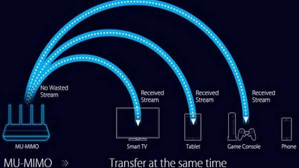 Đối với hệ thống truyền thống, tín hiệu Wifi sẽ được truyền tới mỗi thiết bị theo cách tuần tự, nên sẽ tạo ra một lượng độ trễ đáng kể khi có nhiều thiết bị cùng kết nối. MU-MIMO sẽ giải quyết vấn đề này bằng cách cho phép router hoặc AP thực hiện truyền dữ liệu đến nhiều thiết bị cùng một lúc.