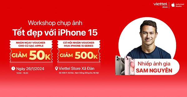 Bạn mong muốn Tết này có những bộ hình thật đẹp và sắc nét như chụp bằng máy ảnh cơ mà không phải thuê thợ chụp ảnh? Vậy thì hãy lên lịch tham gia ngay workshop chụp ảnh “Tết đẹp với iPhone 15” của Viettel Store nhé. Tại sự kiện này, bạn sẽ được nhiếp ảnh gia Sam Nguyễn hướng dẫn các tips chụp ảnh Tết trên điện thoại đẹp lung linh, tha hồ “sống ảo” đăng lên mạng xã hội khoe cùng bạn bè.