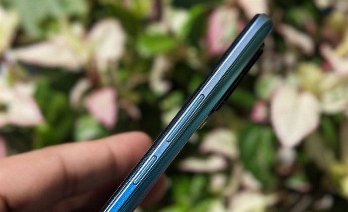 Toàn bộ phần khung viền và mặt lưng của Realme 8 Pro được hoàn thiện từ chất liệu polycarbonate nên máy khá nhẹ. Dù gánh thêm viên pin 4.500 mAh nhưng trọng lượng của 8 Pro chỉ 176 gram. Ngoài ra, máy khá mỏng các các góc cạnh được bo cong đem đến sự thoải mái cho người dùng. Và dù khá nhẹ và mỏng nhưng máy lại rất chắc chắn và không thể bị uốn cong khi đút trong túi quần.