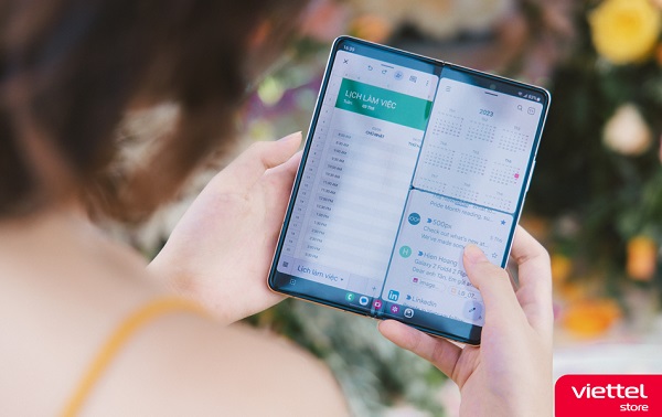Là một người có lịch trình và task công việc liên tục, Galaxy Z Fold4 như một trợ thủ đắc lực khi có thể mở cùng lúc một cửa sổ Excel soạn thảo, một cửa sổ Lịch và một cửa sổ Mail để kiểm tra và lên lịch nhanh chóng.