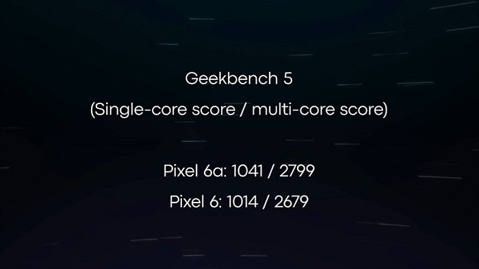 Có thể nói đây là một kết quả rất tốt mà Google Pixel 6a đạt được khi so với các sản phẩm khác cùng phân khúc. Điểm số lõi đơn và đa lõi của máy trong bài kiểm tra Geekbench hơn hẳn so với phiên bản tiêu chuẩn Google Pixel 6 là 1.014 điểm/2.679 điểm. Ngoài ra, điểm tổng trong bài kiểm tra 3DMark của máy cũng không cách quá xa so với phiên bản Google Pixel 6 Pro là 6.526 điểm. Nhìn chung, đây thật sự là một điểm cộng rất lớn cho Pixel 6a về mặt hiệu năng mà máy sở hữu.