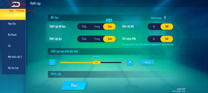 – Bật chế độ hiệu suất cao, tính năng không gian trò chơi.
