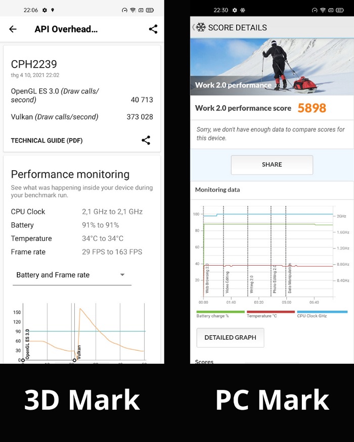 Ngoài chơi game, chúng tôi cũng đã sử dụng một số phần mềm để chấm điểm hiệu năng của OPPO A54. 3 phần mềm được sử dụng trong bài test này là 3D Mark, GeekBench 5 và PC Mark.