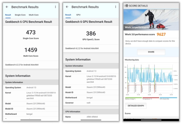 Điểm số hiệu năng Redmi Note 13 được chấm thông qua các phần mềm chấm điểm phổ biến như GeekBench 6, 3DMark và PCMark. Kết quả kiểm tra như sau: